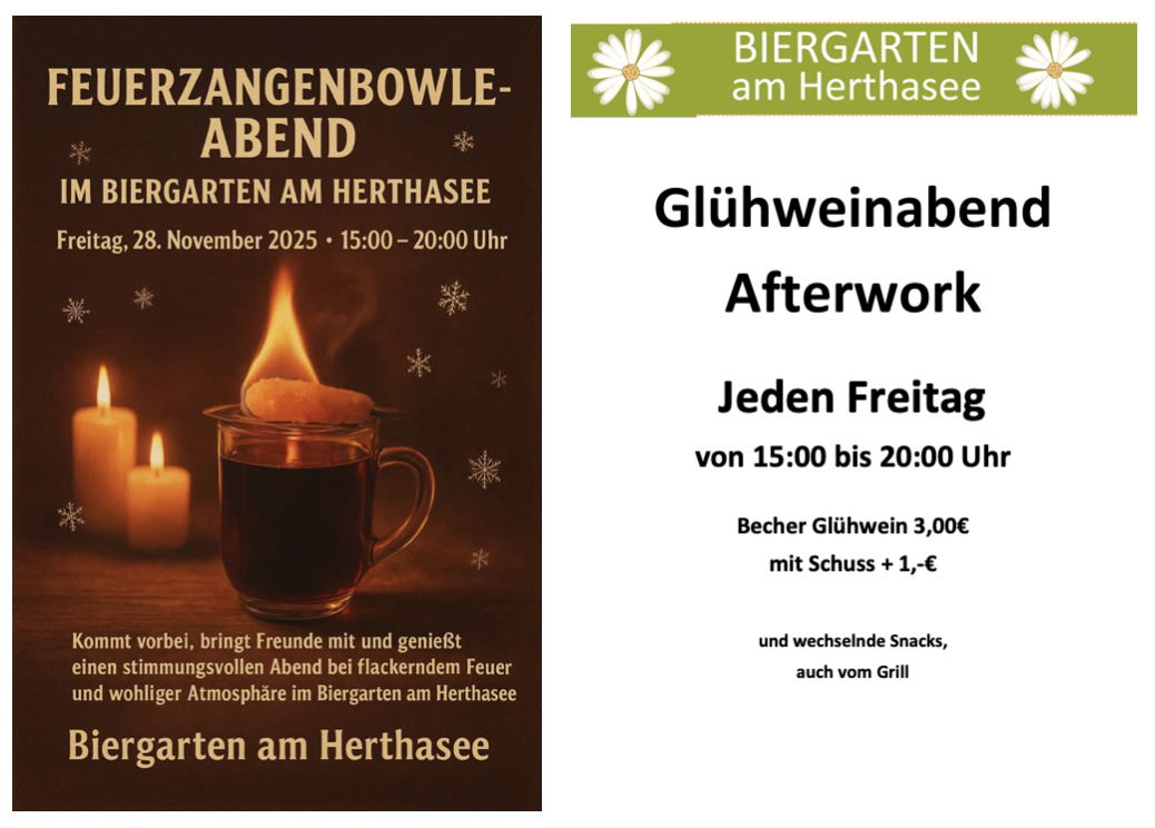 Kommt vorbei, bringt Freunde mit und genießt einen stimmungsvollen Abend bei flackerndem Feuer und wohliger Atmosphäre im Biergarten am Herthasee!